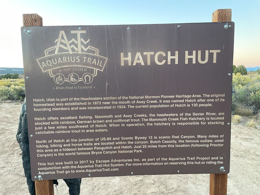 Whether you shuttle from Escalante or start riding from Brian Head you’ll take the same route, though plan to do some extra climbing on pavement if you start in Brian Head. The day starts by gaining about 900 feet on a dirt road climb to where you start the singletrack. Climb another 100 feet and get ready for some fun. Over the next 12 miles you’ll lose 3,000 feet of elevation on swoopy singletrack. At the bottom of the descent the GPS file routes you straight onto a dirt road, but just prior to the road on your right you’ll see a bridge over the creek. Take this and stay on singletrack. You’ll dump out at the intersection with UT-143. Now this is important: the route will have you turn right onto UT-143, which is exactly what you want to do to continue to the hut. However, this is where you want to apply Aquarius Trail hack #1 and hang a left to the Burger Barn in Panguitch. It is just under a mile and well worth it for lunch and an adult beverage. Play a round of cornhole while your burger settles and then head to the designated route. From the Burger Barn you have 22 miles and about 1,100 feet of climbing between you and the hut. You’ll do 2 miles on the pavement and then hang a left onto a dirt road for a climb featuring volcanic rock and a descent into Hatch, UT. Ride through town and finish off your last two miles on a sandy dirt road that is a slow drag to the Hatch Hut.